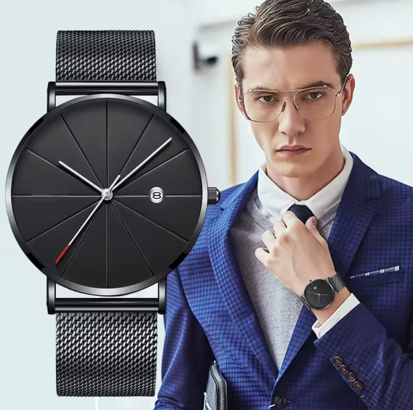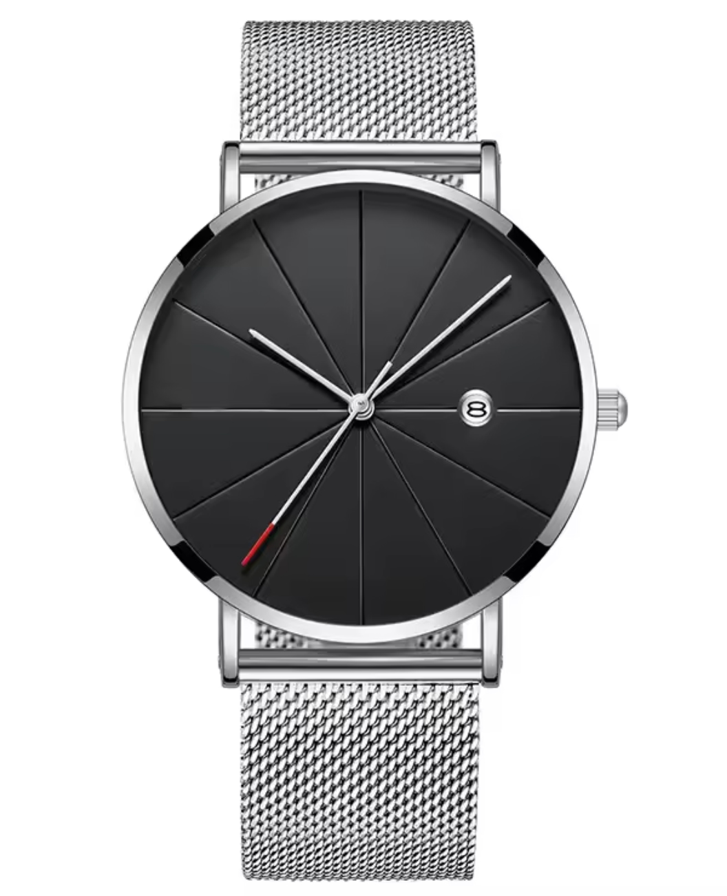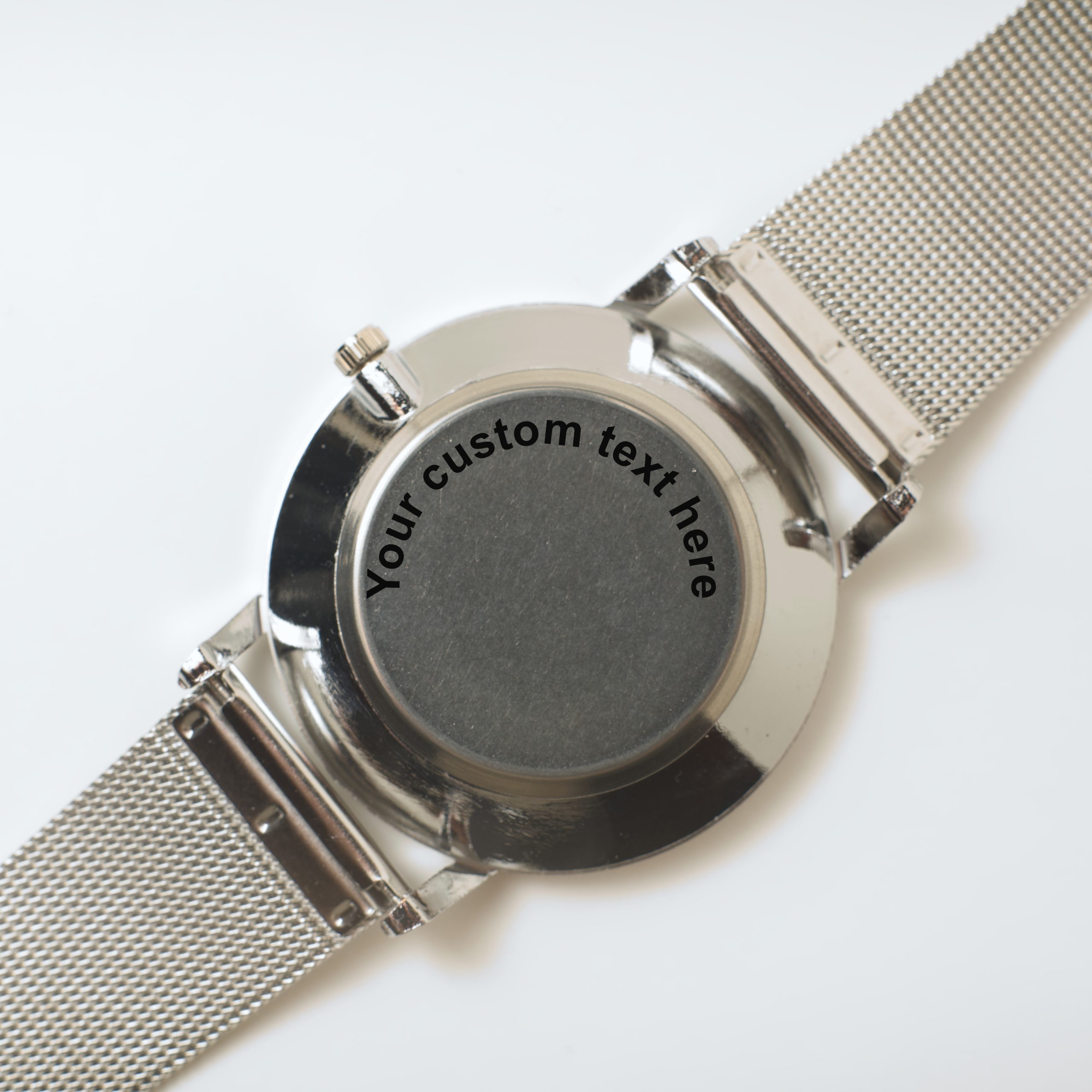 Custom Engraved Minimalist Black Dial Stainless Steel Mesh Watch