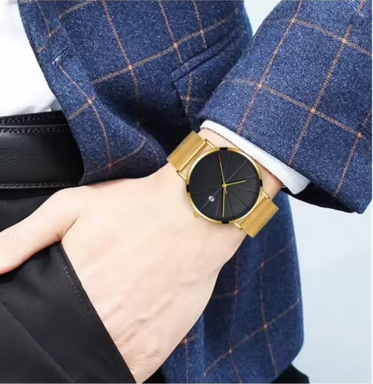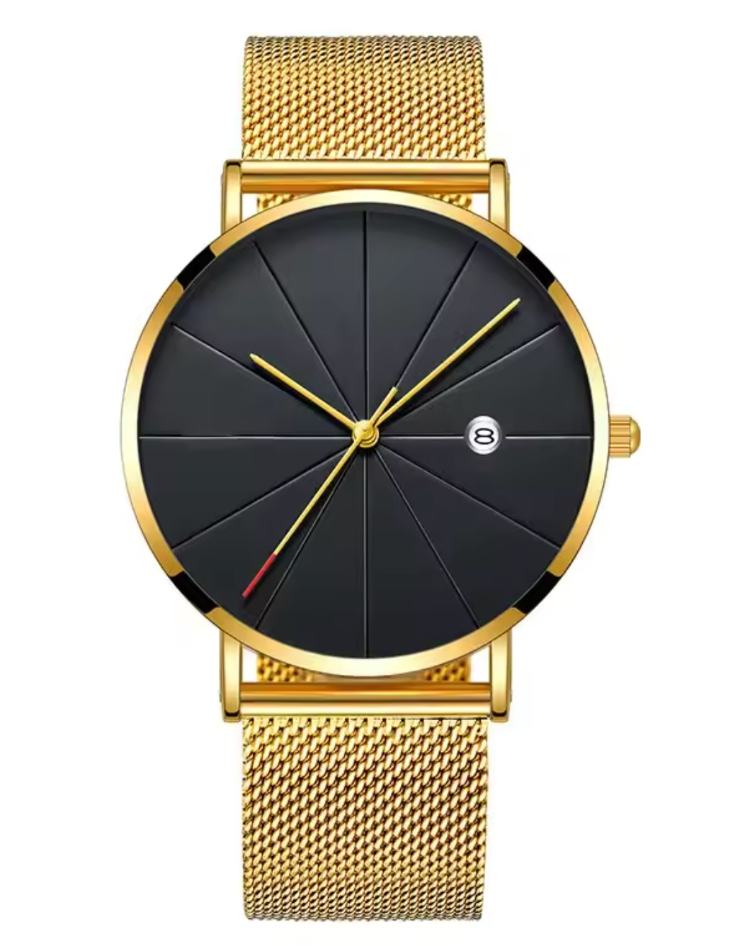 The gold mesh strap is lightweight, breathable, and comfortable for all-day wear.