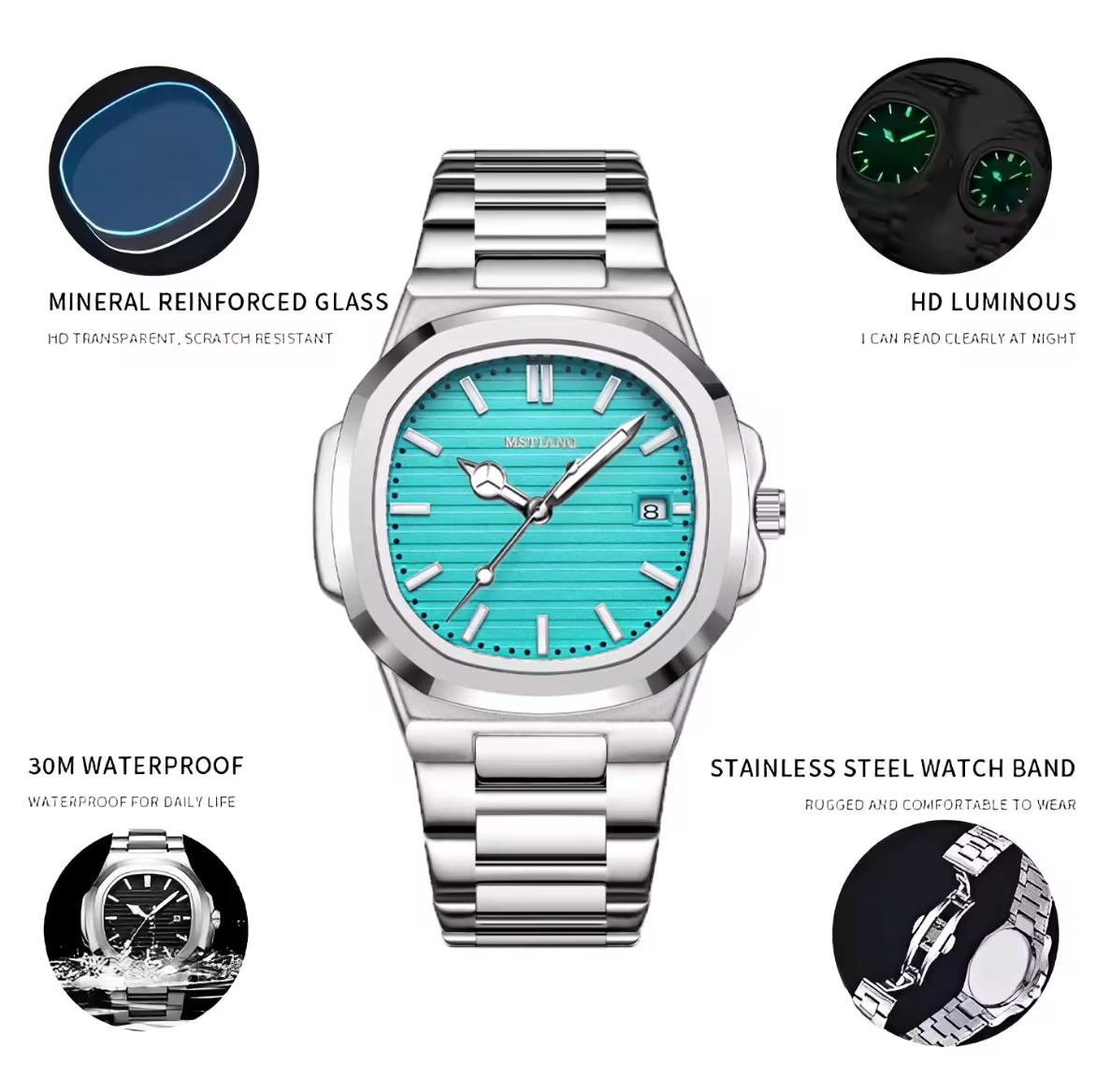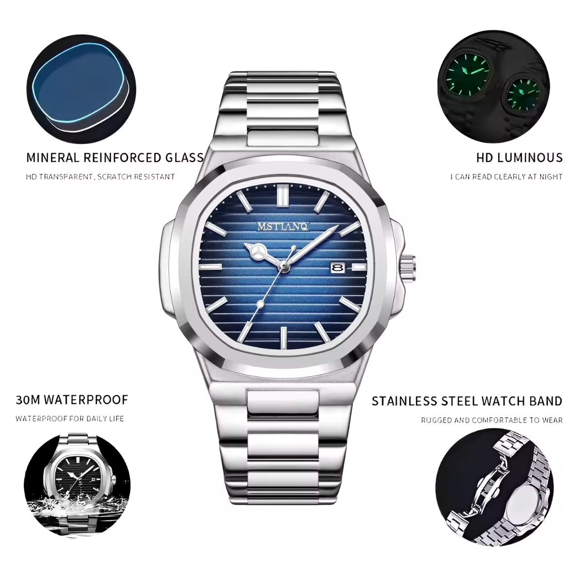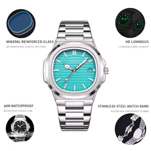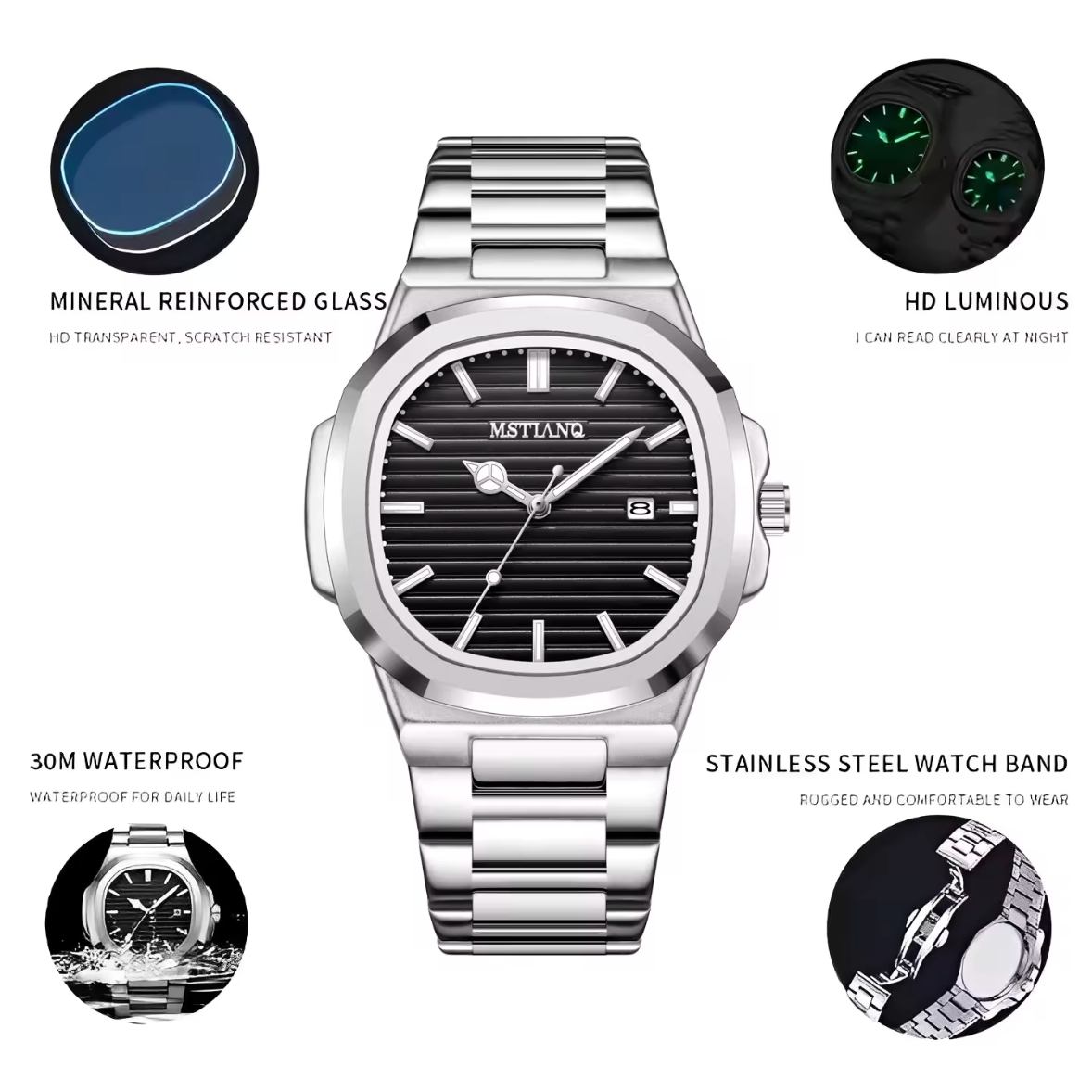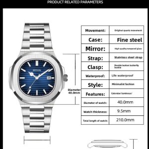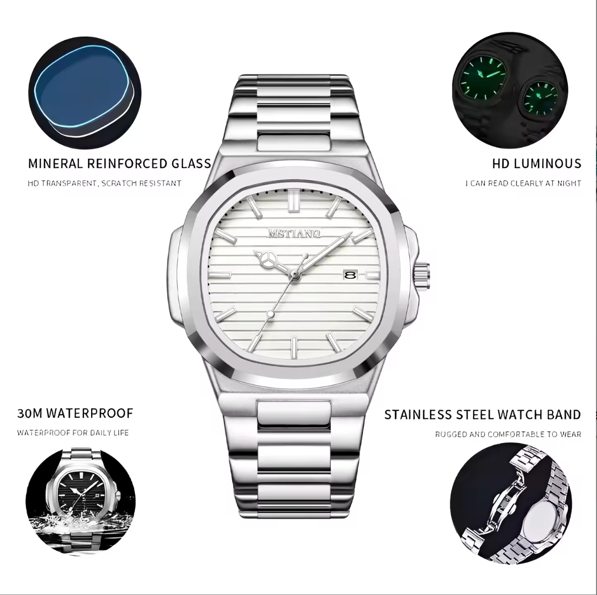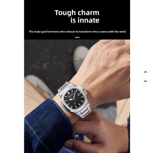 Finished with a polished stainless steel link bracelet, this watch offers a confident yet versatile style—perfect for both casual wear and more formal occasions.