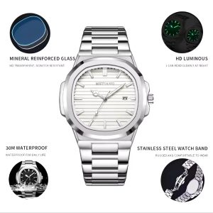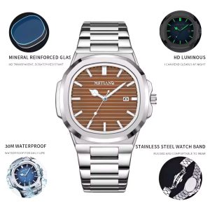 Designed for everyday elegance, this stainless steel timepiece blends modern structure with timeless appeal.