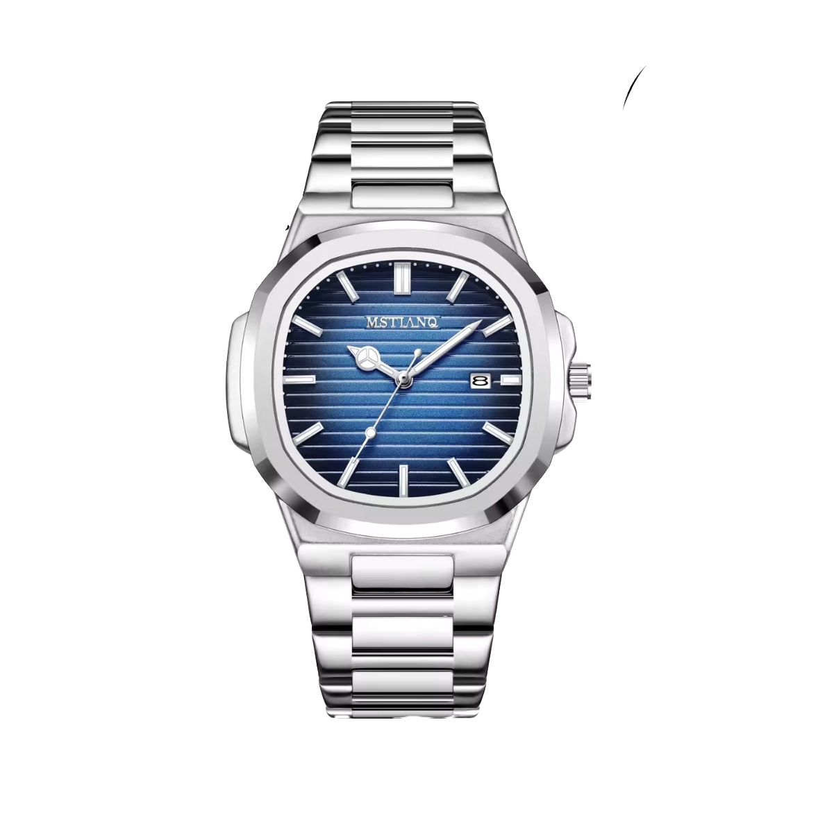Slim baton hour markers and minimalist hands create a clean, balanced look, while the discreet date window adds practical functionality.
